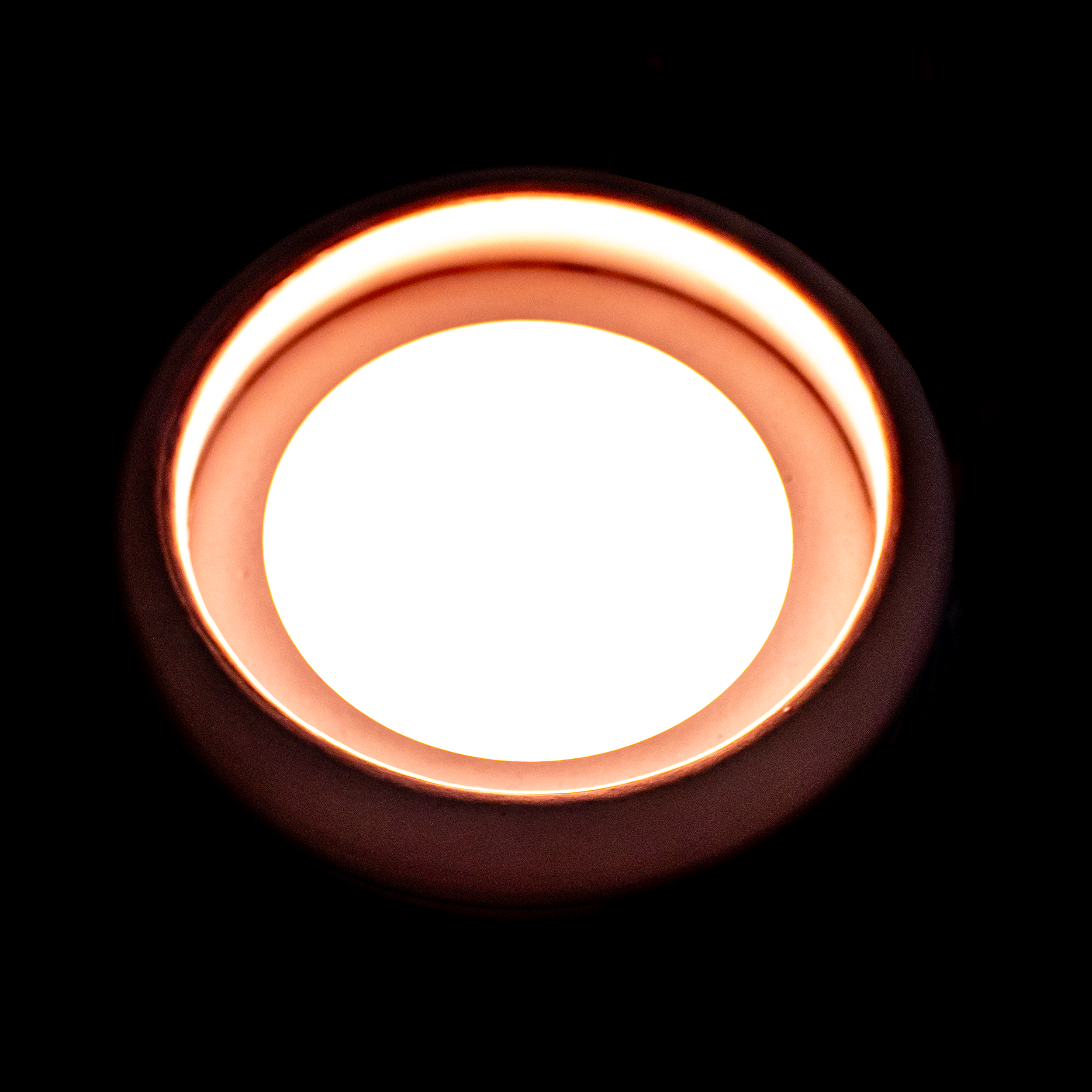 The two knobs affect volume and BPM. As the playback speed is turned down, the vase emits a slow, pulsating orange glow. As the BPM is turned up, the light begins to flash faster and more sporadically, shining a harsh white light.